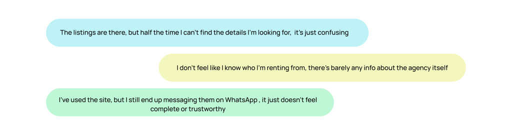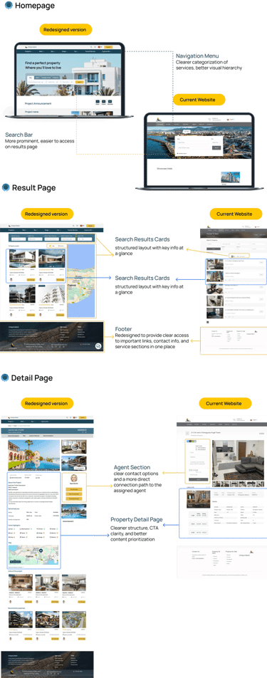 This real estate agency had launched a basic website but found that users were still relying on calls, emails, and social media to get the information they needed. The existing site lacked clarity, structure, and trust-building elements , making it hard for users to navigate and for the agency to scale its services efficiently